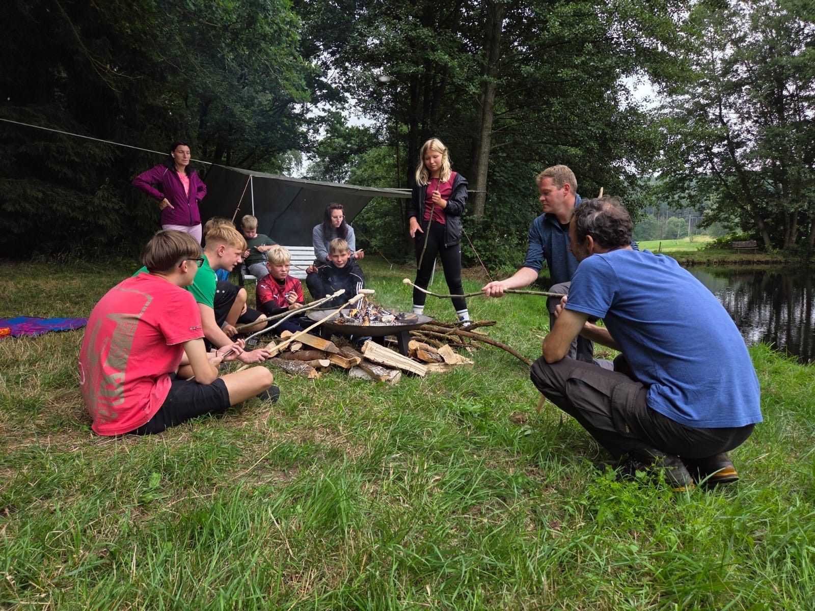 Lagerfeuer, selbst gebaute Angelruten, gemeinsames Kochen und Spiele am See machten die Aktion zu einem echten Gemeinschaftserlebnis voller Abenteuer und Zusammenhalt.
