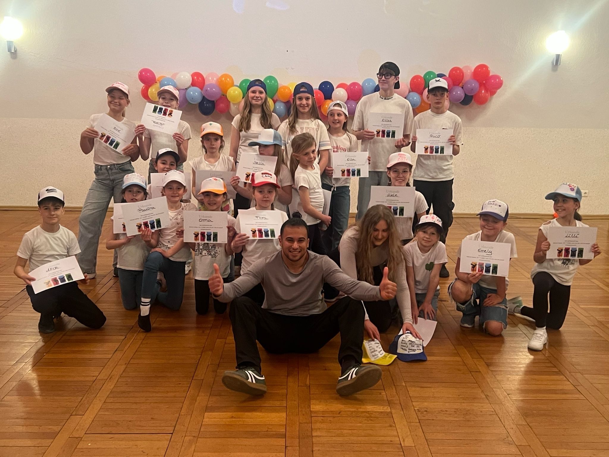 20 Kinder und Jugendliche erarbeiteten gemeinsam mit einem internationalen Breakdancer und seiner Partnerin ein Tanzprogramm aus Breakdance, Hip-Hop und Zumba.